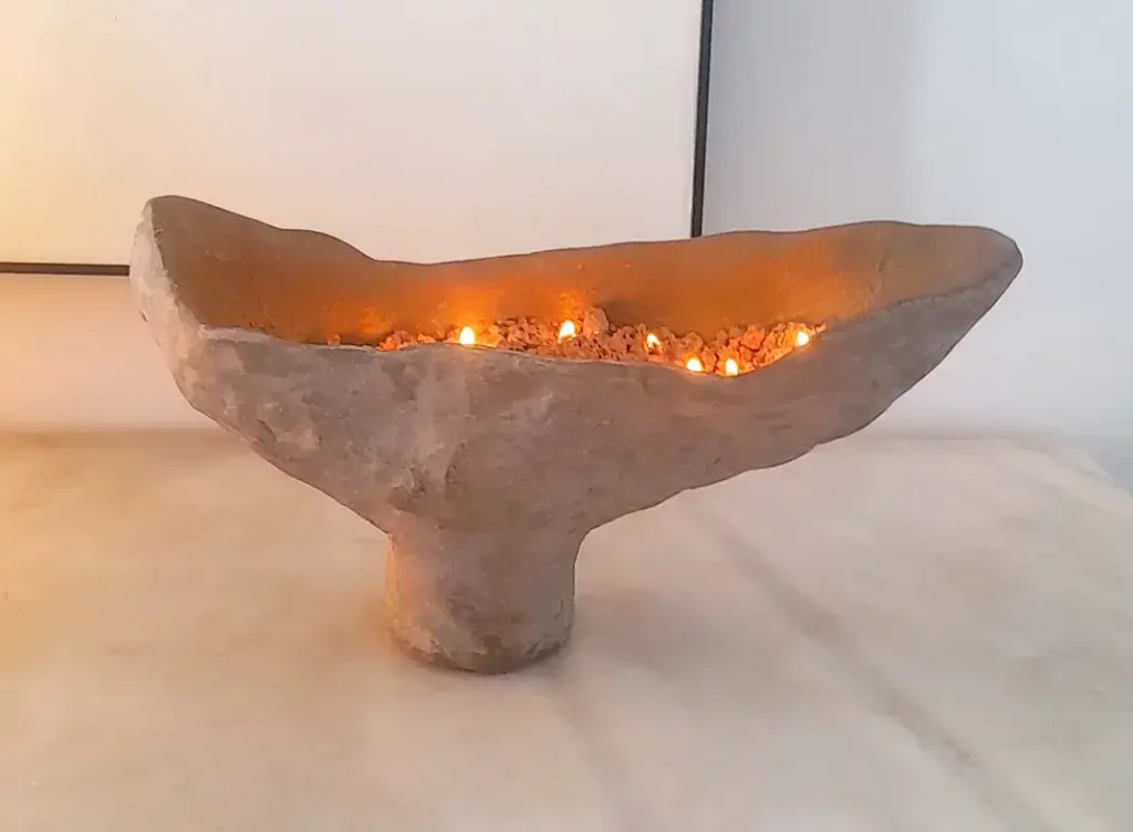 - Función: Contenedores rituales multiuso: portavelas, recipientes de arena/cera, o cuencos para pequeños elementos significativos.